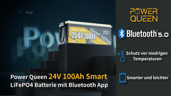 (0% MwSt.) Power Queen LiFePO4 24V 100Ah Smart Solarbatterie mit Bluetooth